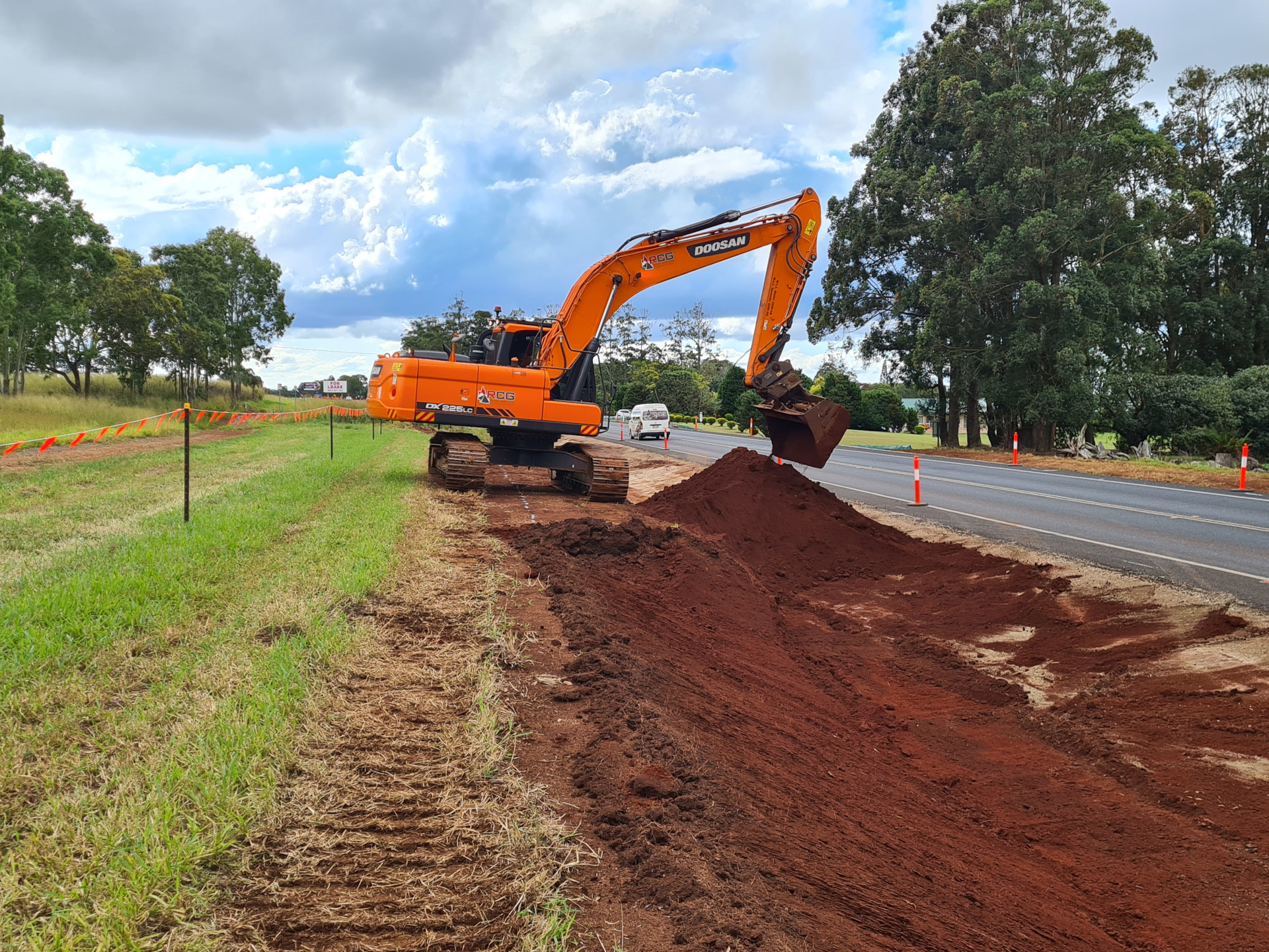 RCG has worked closely with the client to deliver this project as one of 3 concurrent projects on the Kennedy Highway with a combined 27km of road widening for wide centreline treatment and intersection upgrades. RCG has developed innovative methodologies to construct pavement widening from within the drain to minimise traffic disruption and travel time delays.